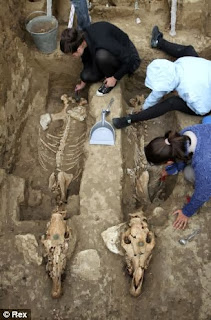 Arheologii bulgari au descoperit la Sveshtari rămăşiţele unui car de luptă şi scheletele a doi cai înhămaţi la acesta, cu o vechime de aproximativ 2.500 de ani.